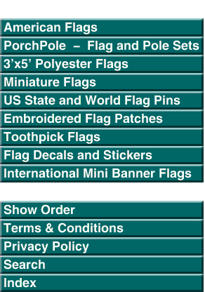 If you can not meet the $20.00 minimum for wholesale pricing on this site or do not see the product you need here, please visit our low price specialty retail sites for polyester flags, miniature flags, flag patches, flag stickers, flag lapel pins and more.