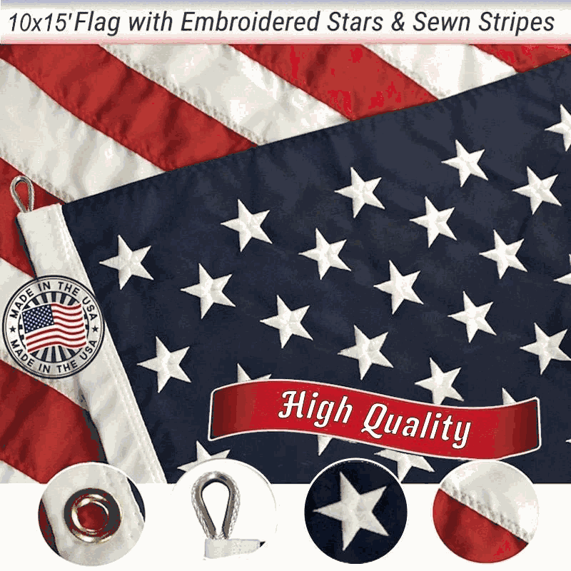 - 10'x15' USA Flag: Large, high‑visibility American flag designed for commercial, municipal, and institutional display