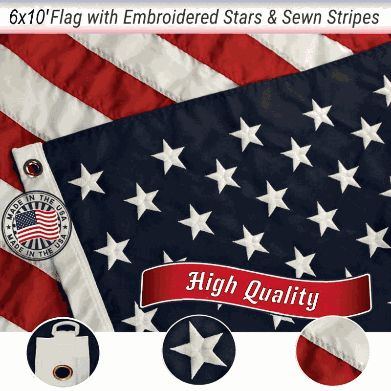 - 6'x10' USA Flag: Premium quality construction from one of Americas most trusted flag manufacturers