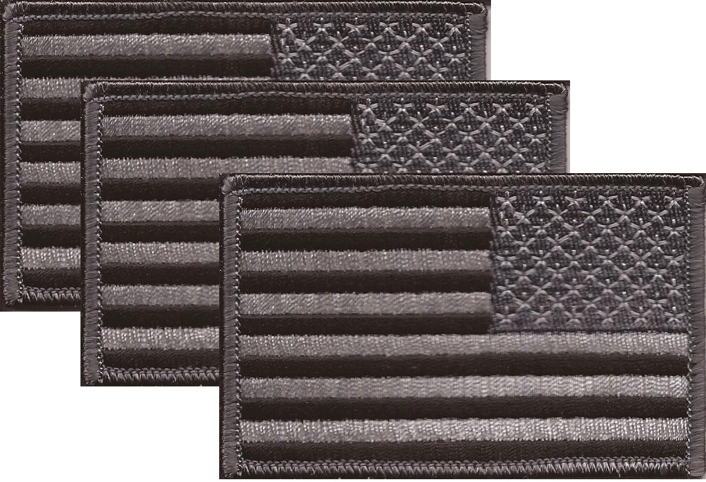 Click to enlargeUS Subdued Black and Silver Right Hand Flag Patch<br>Pack of 3
