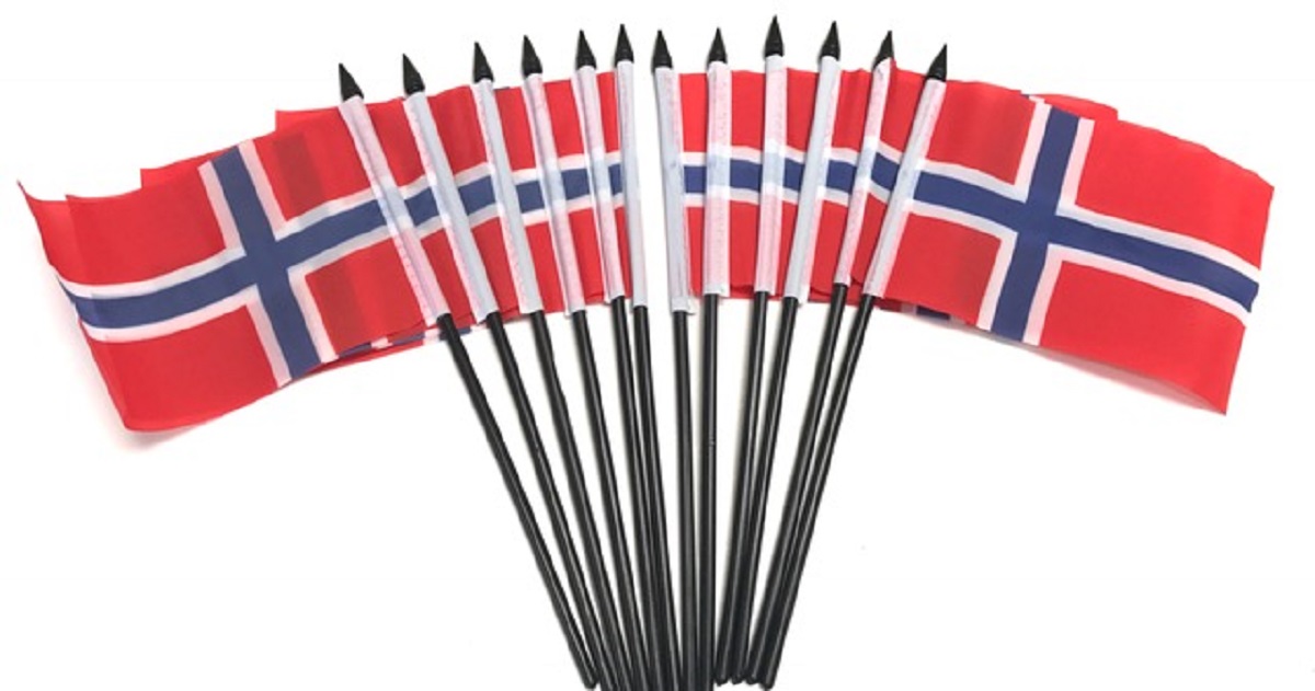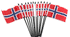 Norway Miniature 4"x6" flags are attached to a 10" black plastic staff with a spear top. These small mini table flags are perfect for special events, classroom use, international theme parties and home or office decoration.