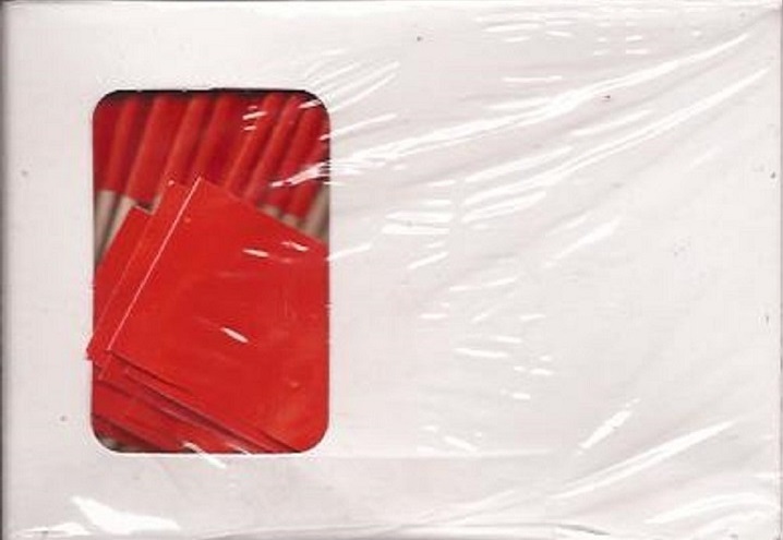Red Toothpick Flags are packed 100 toothpicks per box. Flags are 1″ x 1.5″ and are attached to a standard sized 2.5″ wood toothpick.