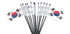 South Korea Miniature 4"x6" flags are attached to a 10" black plastic staff with a spear top. These small mini table flags are perfect for special events, classroom use, international theme parties and home or office decoration.